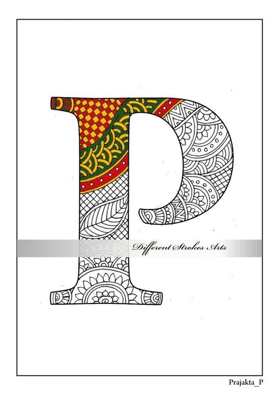 Adult Coloring Pages Alphabet P Printable Zentangle Alphabet For Coloring Henna Doodle Letter P Adult Coloring Pages Letters