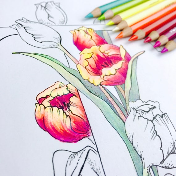 Adult Coloring Page Printable Coloring Page Coloriage Adulte Floral Coloring Flowers Coloring Patterns Coloring Sheet Instant Download
