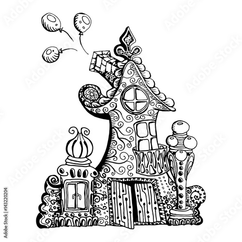 Original Hand Drawn Doodle Style Fairy House Can Be Used For Kid Coloring Book Design