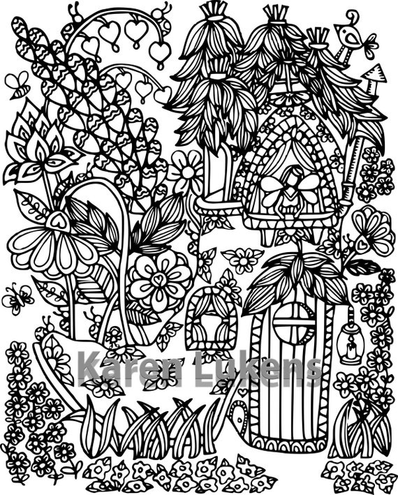 Fairy House 5 1 Adult Coloring Book Page Printable Instant Download