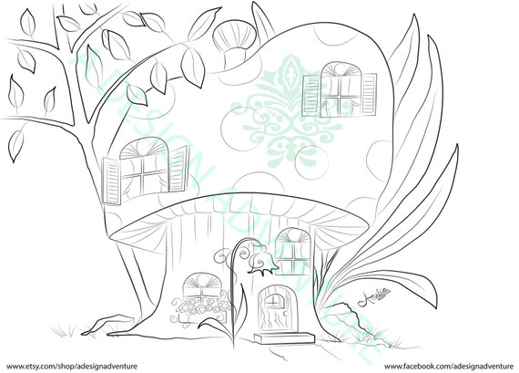 Adult Coloring Book Printable Page Fairy House Coloring Page Mushroom Fairy House Coloring Page Mushrrom Coloring Page