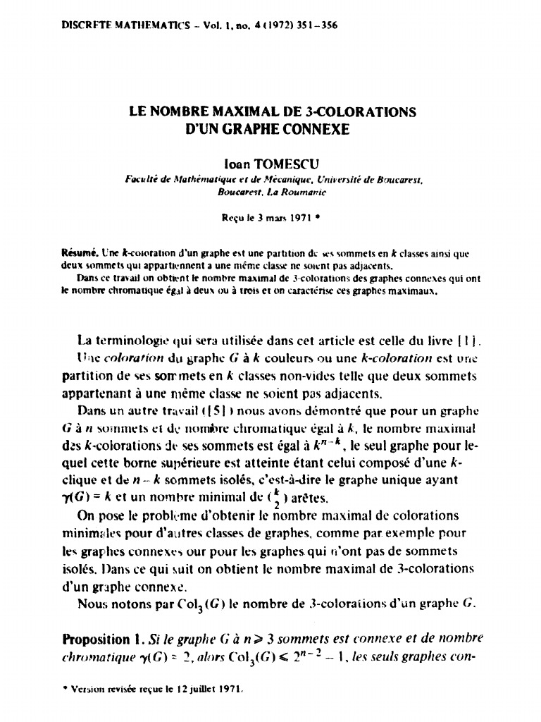 Pdf Probleme De La Somme Coloration D Un Graphe