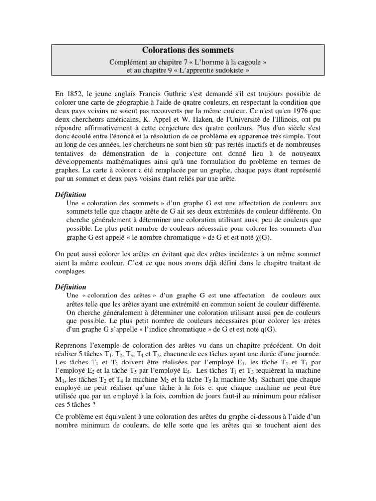 Graphes Problemes De Coloration