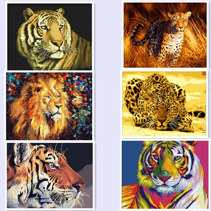 Adouftwo Tiger Animal Picture Painting By Numbers With Kits
